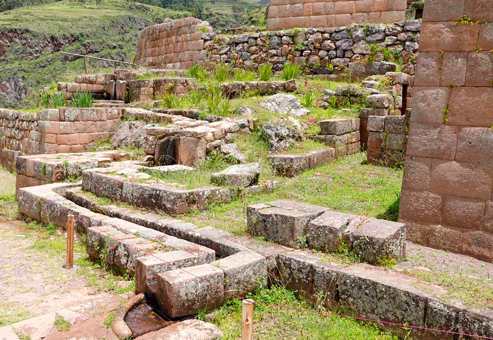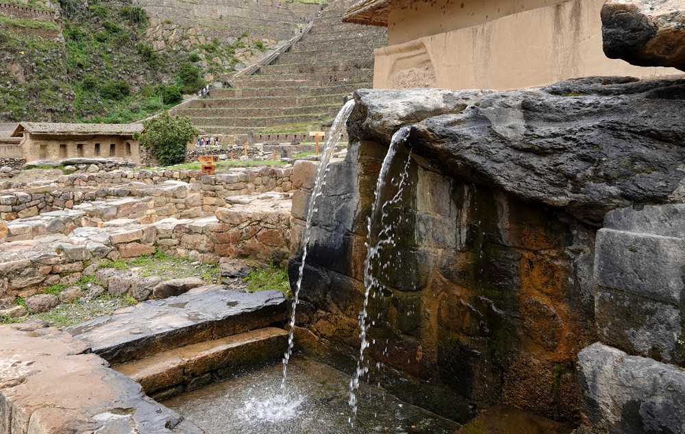 Nous redescendons et allons vers la zone du Temple de l’Eau et du Baño de la Ñusta où les filles de l’Inca venaient se purifier avec l’eau de la montagne. Plusieurs bassins et fontaines, encore en fonctionnement et intégrés dans un système de canaux, servaient à des fins rituelles ou domestiques.