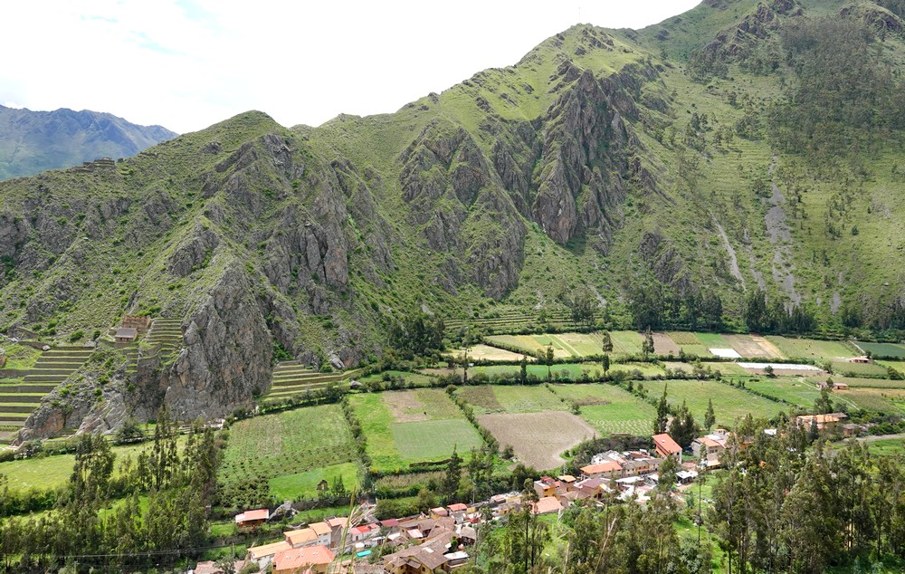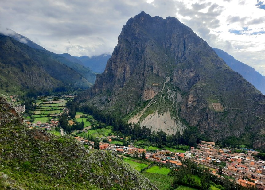 Après un déjeuner-buffet pris sur les hauteurs d’Urubamba, vers 14h30 nous arrivons à Ollantaytambo qui est la seule ville de la période inca encore habitée. En 1537, elle fut le siège de combats acharnés entre Incas et Espagnols, Manco Inca s’y réfugia pour tenter de fédérer la résistance inca après la chute de Cuzco. Il y a un monde fou dans les ruines et les ruelles – logique, toutes les excursions en provenance de Cusco arrivent en même temps ! On se félicite alors de passer trois nuits ici, car on imagine que le matin et le soir, les lieux seront beaucoup plus calmes… Effectivement, après un moment à l’hôtel, quand on ressort vers 16h30, la place a retrouvé une certaine tranquillité ce qui est fort agréable ! On s’installe à une terrasse pour prendre un verre et faire quelques photos ensoleillées des environs – a priori, il faut en profiter car la pluie est annoncée pour les jours à venir !