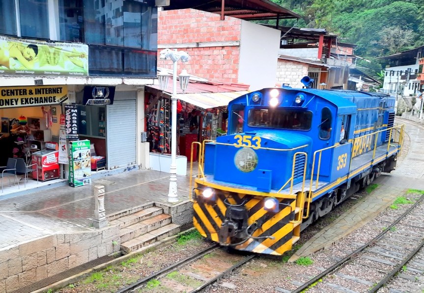 - Train Ollantaytambo => Aguas Calientes, compagnie Inca Rail, plusieurs départs par jour, durée 1h40 en moyenne. Les prix varient selon l’heure et la classe choisie ; US$104 l’AR par personne pour nos trajets. La compagnie Peru Rail propose également des voyages similaires. Autre possibilité de rejoindre Aguas Calientes, ville ne disposant d’aucune route d’accès, prendre un collectivo depuis Cusco pour Hydroelectrica puis marcher 11km (néanmoins en saison des pluies, la balade peut être très humide !). Les plus courageux peuvent aussi entreprendre le trek de l’Inca, 4 à 5 jours de marche depuis Ollantaytambo, sentier fermé en février.