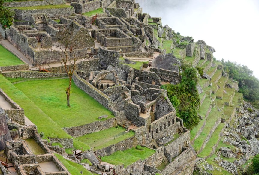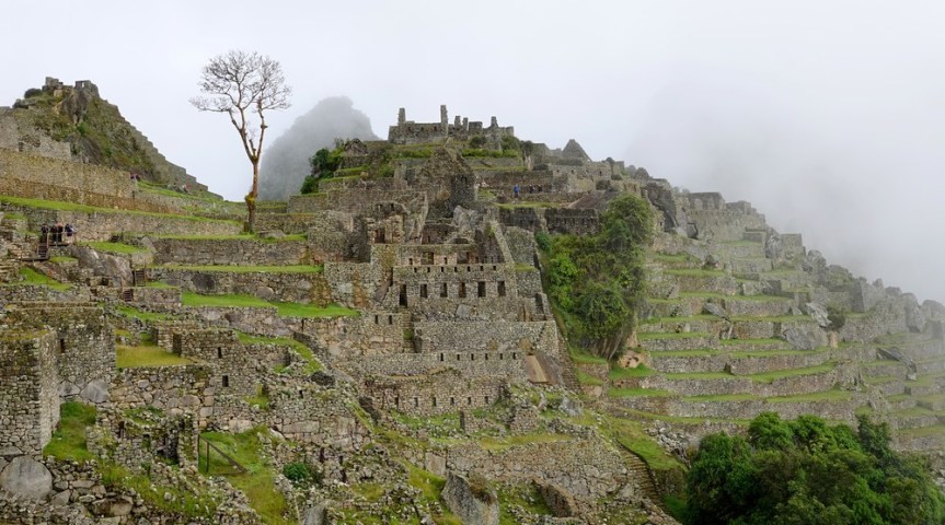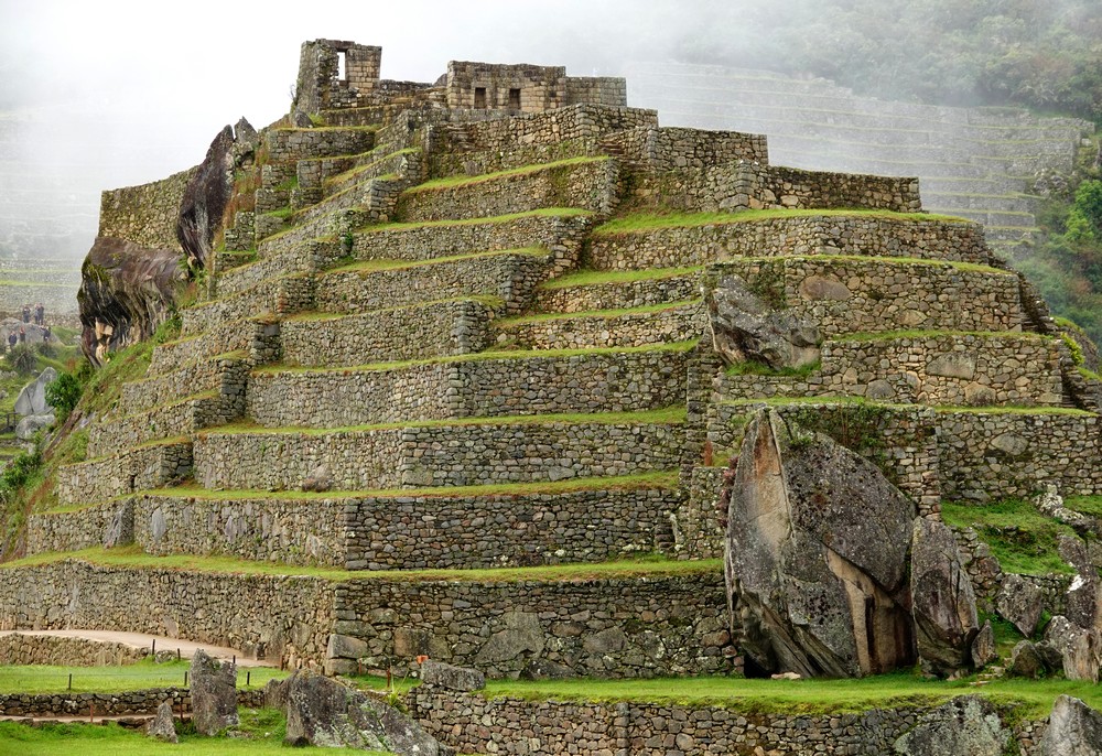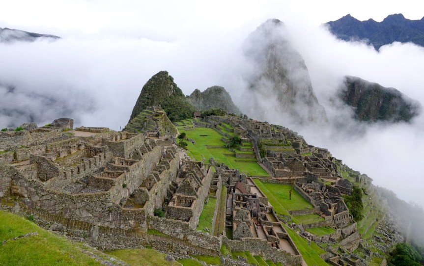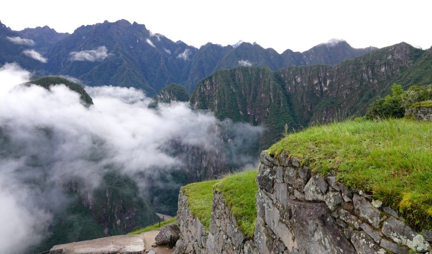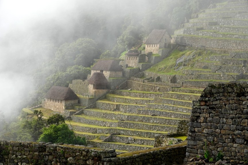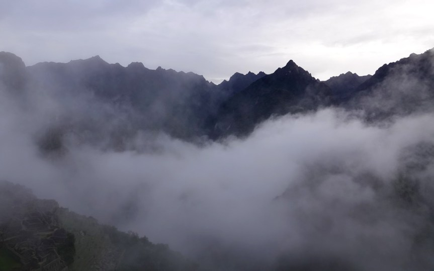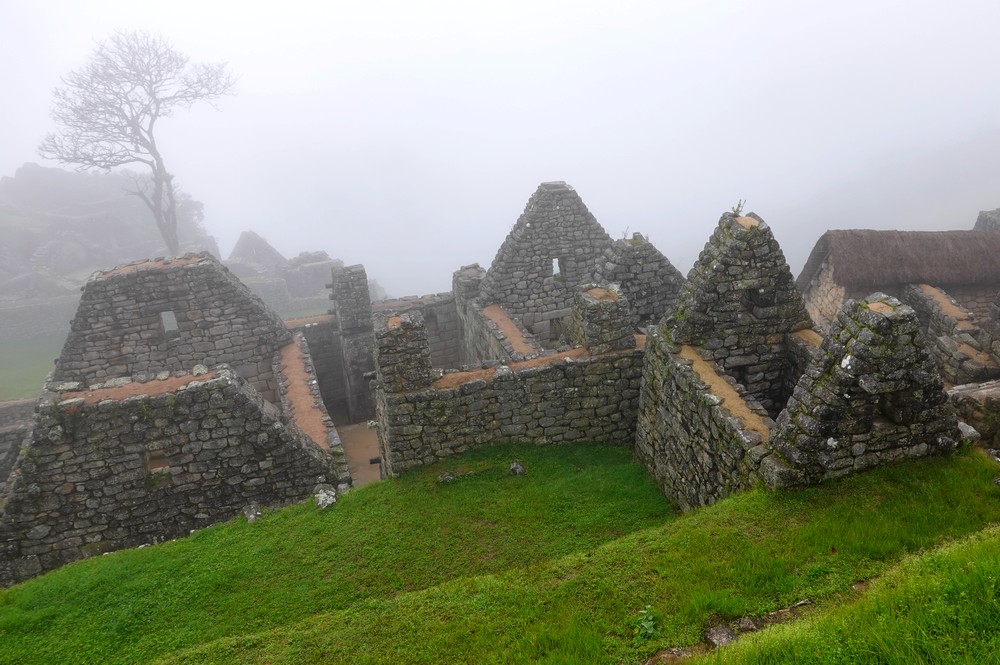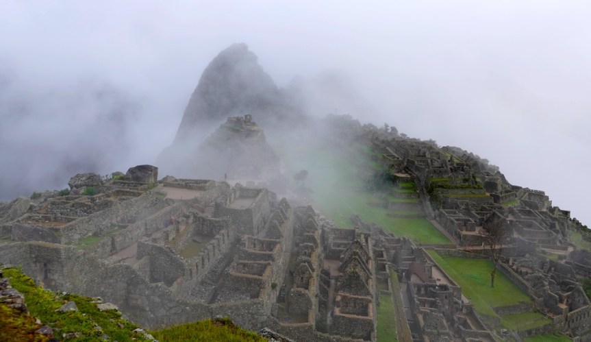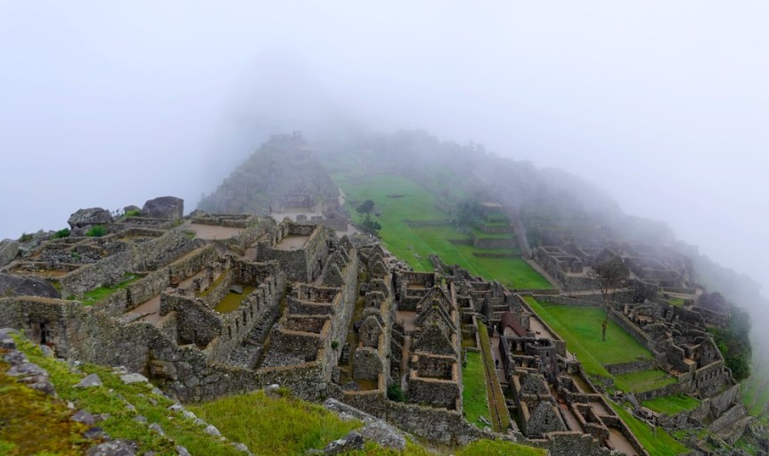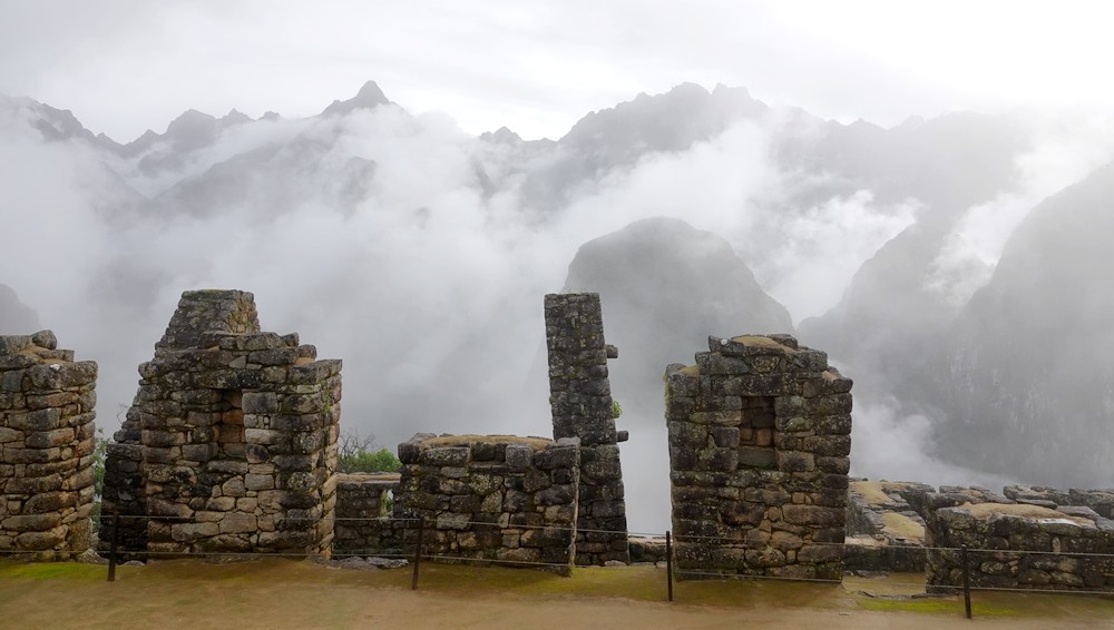 Peu à peu le brouillard s’estompe, laissant apparaitre quelques-unes des ruines de la célèbre cité inca…