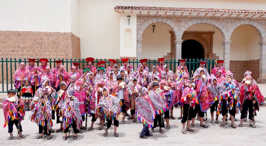 Située à 30km de Cusco et perchée à 3754m d’altitude, Chinchero est une petite ville réputée pour ses ruines incas, son église coloniale et son artisanat de tissage. C’est aussi le lieu de naissance du héros de l’indépendance du Pérou, Mateo Pumacahua, qui a participé aux côtés des frères Angulo à la rébellion de Cuzco de 1814. Nous commençons par visiter les ruines qui, du temps des Incas, abritaient un grand palais. A l’époque, le site était utilisé comme station balnéaire par la noblesse inca, raison pour laquelle on trouve de nombreux aqueducs et terrasses encore utilisés aujourd’hui. D’ailleurs, le sol de Chinchero est réputé être l’un des plus fertiles de la Vallée Sacrée et depuis toujours, fèves, pommes de terre, quinoa sont vendus sur le marché local. Edifiée par les Espagnols sur une partie des ruines, l’église coloniale date de 1607. Ses plafonds peints sont parait-il de toute beauté, mais nous avons trouvé porte close…