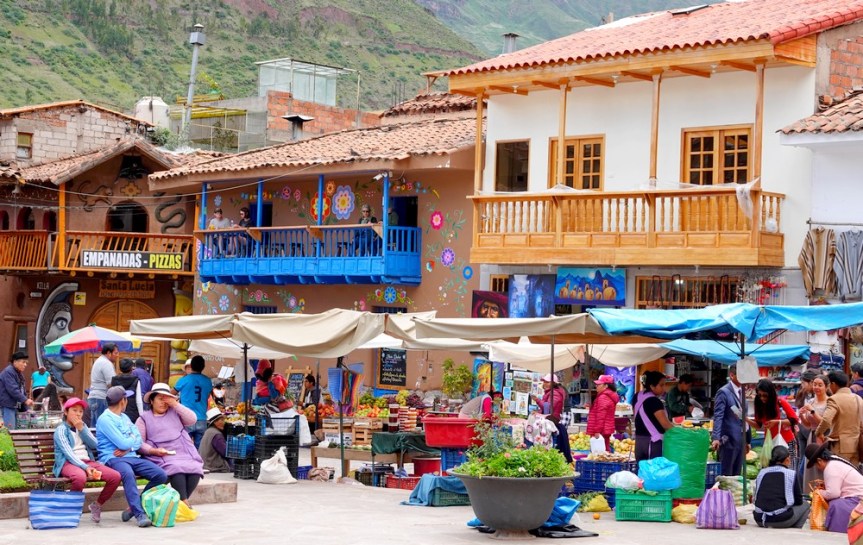 Arrivés sur la place du village, nous tombons sur un groupe de musiciens et chanteurs en tenue locale. Ici, les habitants sont majoritairement indigènes et parlent encore le quechua, la langue des Incas. Tous les jours, se tient un marché artisanal, mais c’est le dimanche qu’il est le plus étendu ! Un peu fatigués, nous nous posons pour déjeuner au Samana Wasi, un petit resto sympathique qui propose un bon poulet grillé. Puis dans l’après-midi, nous retournons à Cusco en collectivo – sous une belle pluie alors que la matinée a été largement ensoleillée ! Cette sortie nous a vraiment enchantés, et la descente du sommet des ruines au village est vraiment une très belle rando !