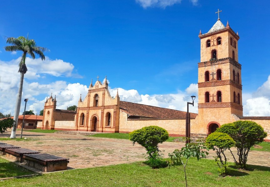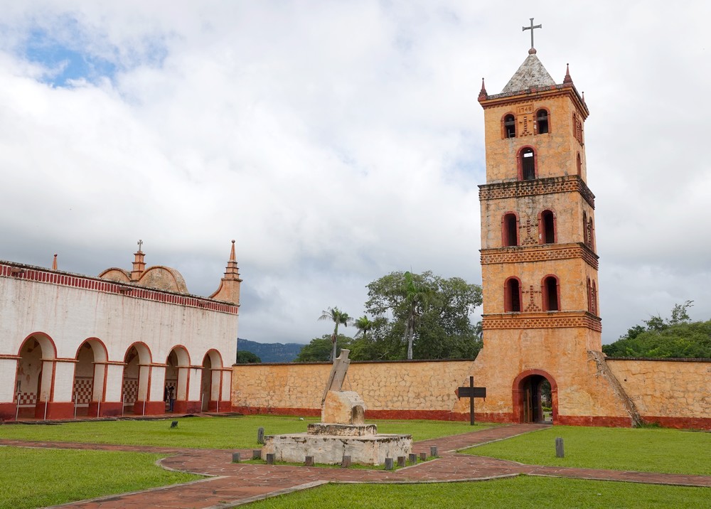 Capitale de la province de Chiquitos, San José est une ancienne réduction jésuite fondée en 1697 dans le Bosque Seco Chiquitano, la forêt sèche la plus vaste du monde ; désormais, la petite ville vit de l’élevage, de l’agriculture et du tourisme. Elle doit son nom au peuple chiquitino qui habite la région depuis toujours, et fut la troisième mission à ouvrir ses portes dans la région, avec pour but principal l’évangélisation des indigènes. Nous visitons l’église de pierre – construite en 1731, elle domine largement la place – et ses dépendances, dont l’architecture mélange différents styles.