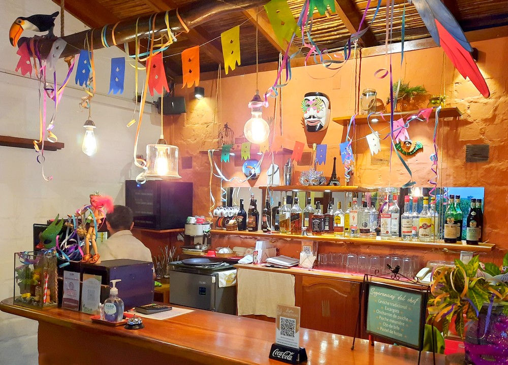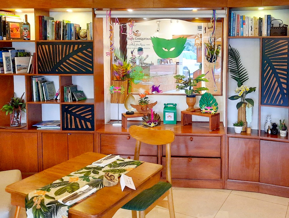 - Hotel La Villa Chiquitana, un peu excentré, situé à 10mn à pied de la place principale. Peu de contact avec les propriétaires, des Français : dommage, on aurait apprécié échanger avec eux sur la région et leur expérience en Bolivie ! Personnel souriant et efficace. Bel établissement très soigné, avec piscine, jardin et salle de sport. Restaurant (très bonne table) et bar (on conseille la caïpirinha d’Ernesto, excellente !). Belle chambre, avec salle de bain privée, minibar et balcon. 378€ le forfait pour 3 nuits en demi-pension, tarif Carnaval.