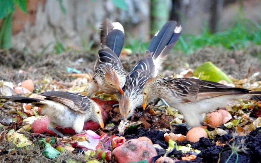 Dans l’après-midi, pendant que je trempe dans la piscine, Gérard va faire un tour dans la campagne environnante. Bonne moisson côté oiseaux puisqu’il approche des guira cuckoos, des caracaras et des urubus à tête noire !
