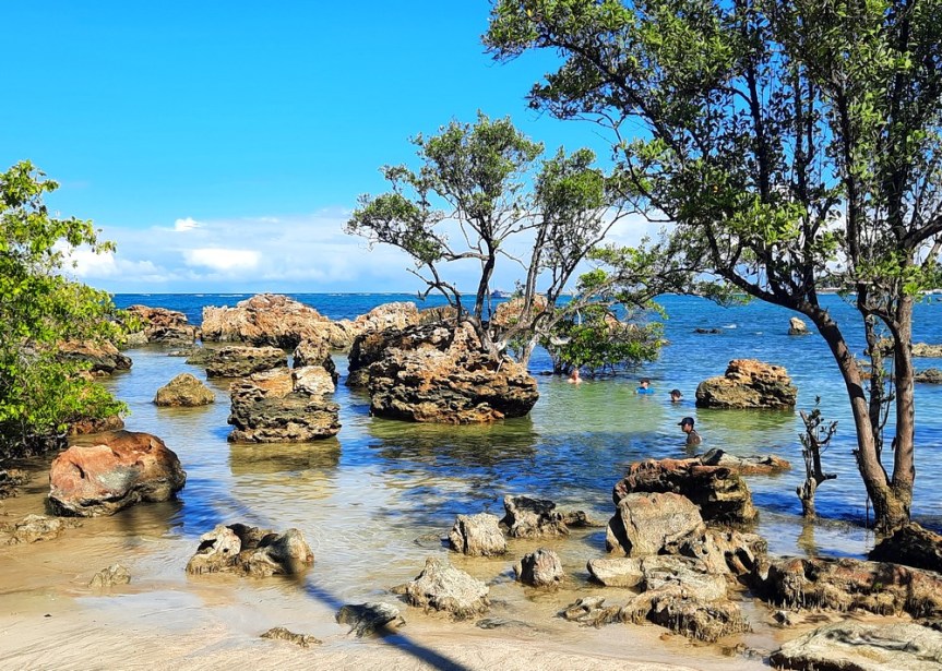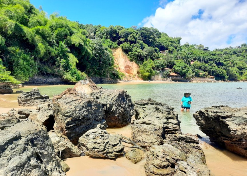 - Balade à pied jusqu’à Gamboa en passant par la plage, à marée basse uniquement, être vigilant car très peu d’échappatoires possibles, environ 4km AS, retour par bateau (R$6 avec le bateau de ligne, départ toutes les heures, R$10 avec un bateau taxi si 6 personnes), il y a parait-il un chemin qui va à Morro par la jungle mais pas testé (trop chaud). Nous sommes partis 2h30 avant la marée basse, c’est un bon timing pour prendre son temps et se baigner en chemin, mais attention, on a parfois de l’eau jusqu’au cuisses, donc prévoir chaussures en conséquence ou marcher pieds nus !