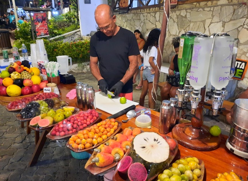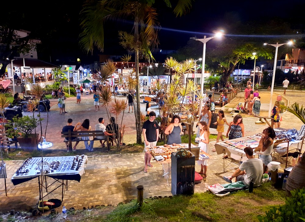 Un de nos grands plaisirs est de sortir faire un peu de shopping – il y a chaque soir un petit marché artisanal sur la place haute – diner ou simplement boire une caïpirinha, le tout dans une ambiance très musicale (voir la vidéo sur notre page Facebook) !
