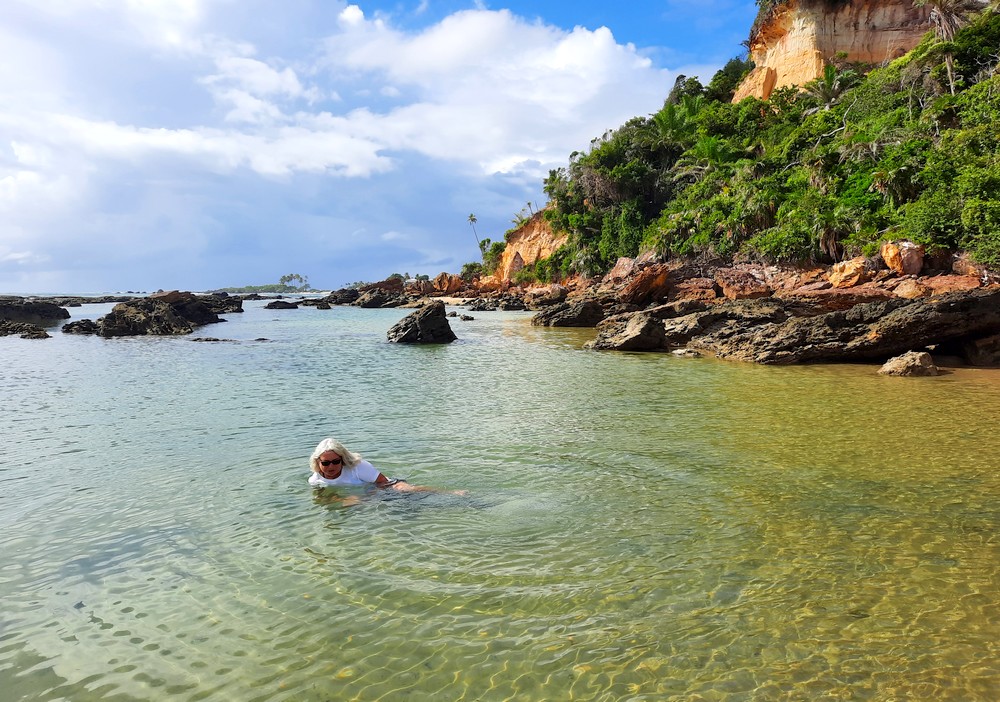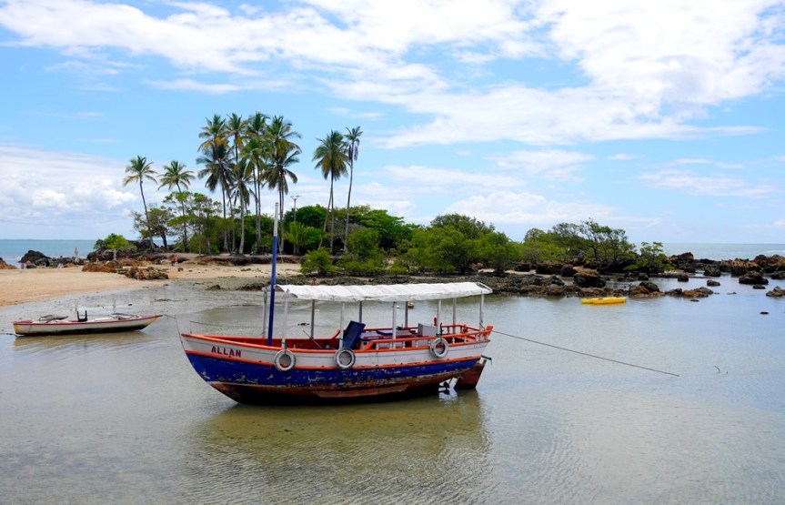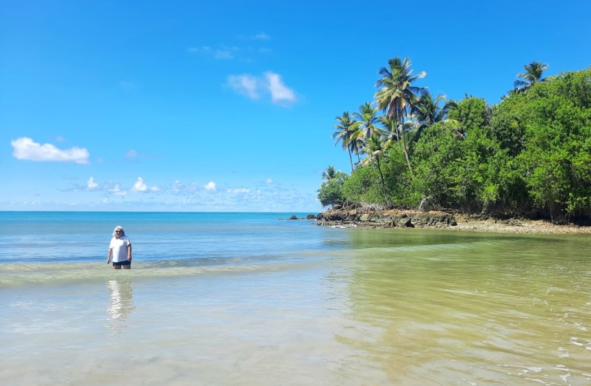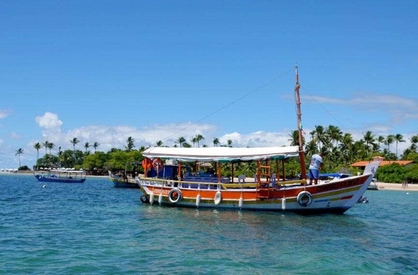 - Excursion journée »Tour de l’ile », durée 9h, R$250 par personne, petit groupe de 14 personnes ; 2 arrêts dans des piscines naturelles, 1 sur la magnifique plage de Boipeba, 1 dans un bar flottant proposant des huitres et 1 dernière à Cairu pour voir l’église baroque. Finalement, nous n’avons pas vraiment apprécié cette sortie : hors-bord trop rapide et bruyant, et la dernière étape a été sautée car le reste du groupe a préféré s’attarder sur le bar flottant. D’autre part, il y a des piscines naturelles tout aussi agréables au Morro. Donc nous conseillons plutôt de prendre un transfert AR pour Boipeba (camionnette & barque) et de profiter d’une journée entière pour se balader sur la plage et dans le village.