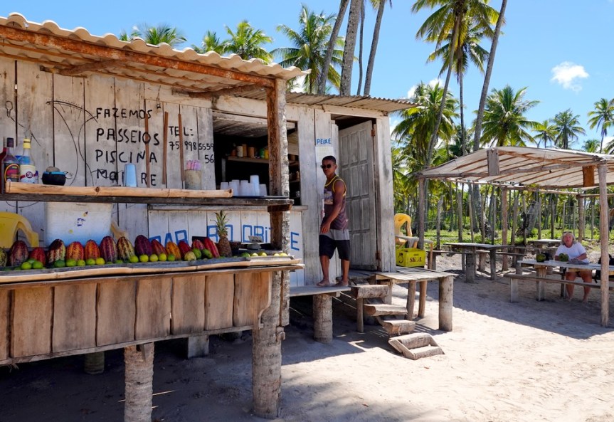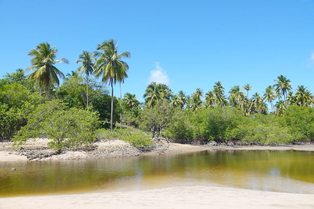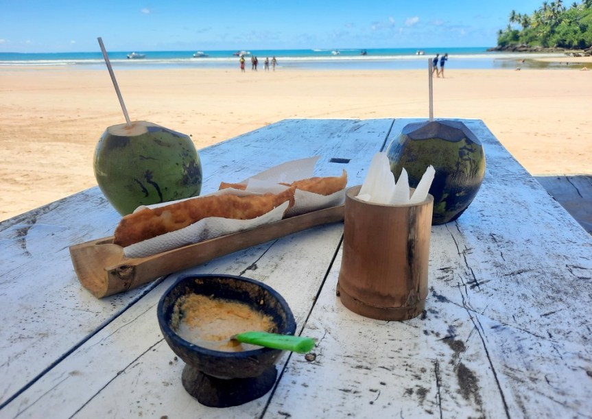 La seconde étape est nettement plus intéressante puisque l’on nous dépose sur la magnifique plage de Boipeba. Ambiance carte postale garantie ! Alors que les autres personnes du groupe grimpent sur une charrette motorisée pour se rendre au village, nous choisissons de rester sur la plage et de nous y balader. Et aucun problème pour le déjeuner, de petites cabanes servent cocos fraiches et pasteis de camarao, de très bons chaussons frits aux crevettes !