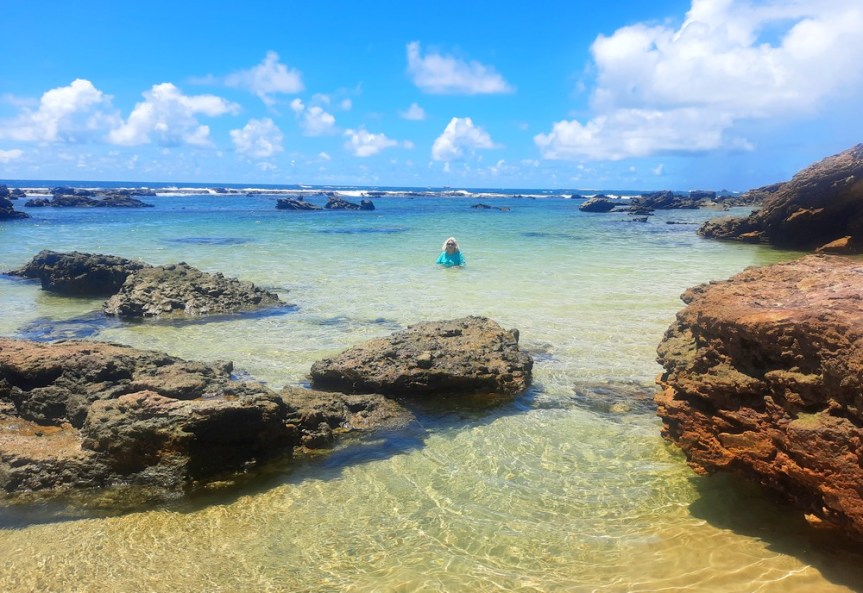 Alors que la plupart des touristes se ruent sur les piscines naturelles des 3ème et 4ème plages, nous préférons passer du temps à celle – beaucoup plus confidentielle – située dans la crique de l’ancien Fort… En fonction de la marée, bien basse de préférence, elle demeure notre préférée et nous y sommes souvent seuls !