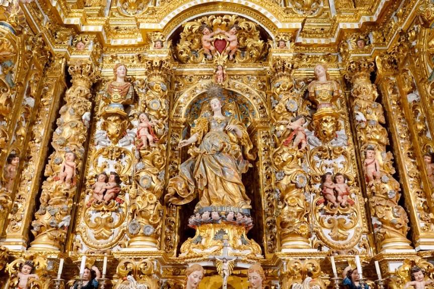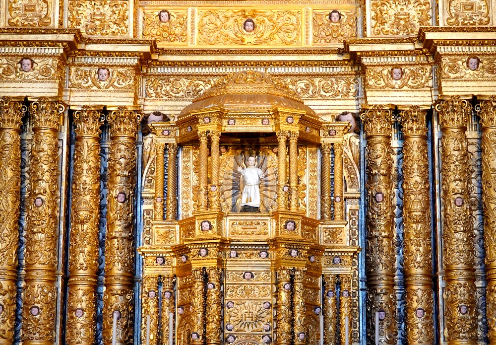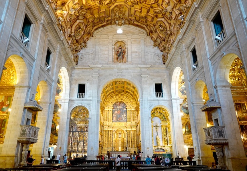 Juste à côté, nous faisons un tour dans la cathédrale aux décors baroques à souhait !
