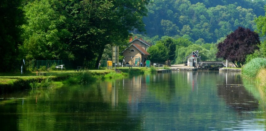 Après une vingtaine de jours passés au bord du lac d’Annecy, nous mettons le cap au nord… Nous faisons un premier arrêt au Mesnois, un village situé non loin de Pont-de-Poitte, dans le Jura. Objectif de cette étape : le camping Beauregard qui possède une magnifique piscine couverte ! Nous avions prévu quelques sorties à vélo, mais comme il a plu tous les jours, nous nous sommes contentés d’enchainer les longueurs…