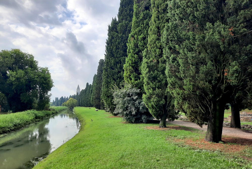 Ce qui nous a immédiatement séduits en arrivant à Aquileia, c’est de découvrir les nombreuses possibilités de balades à vélo. Outre la piste cyclable Alpe Adria qui relie Salzbourg à Grado – véritable autoroute où l’on croise chaque jour des dizaines de cyclistes – et la FVG 2 qui va de Lignano Sabbiadoro à Trieste, d’autres itinéraires sont faciles à improviser, soit sur petites routes, soit sur pistes cyclables annexes.