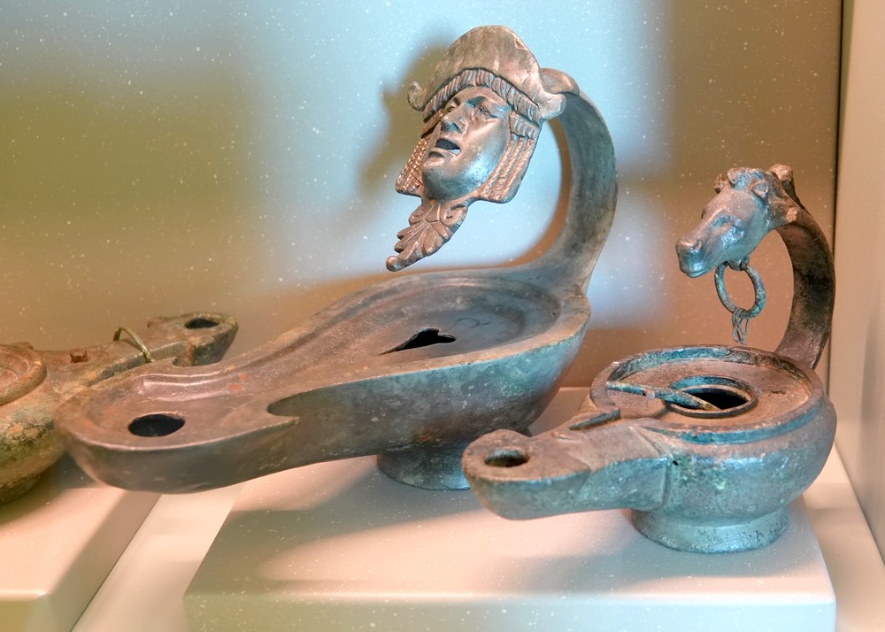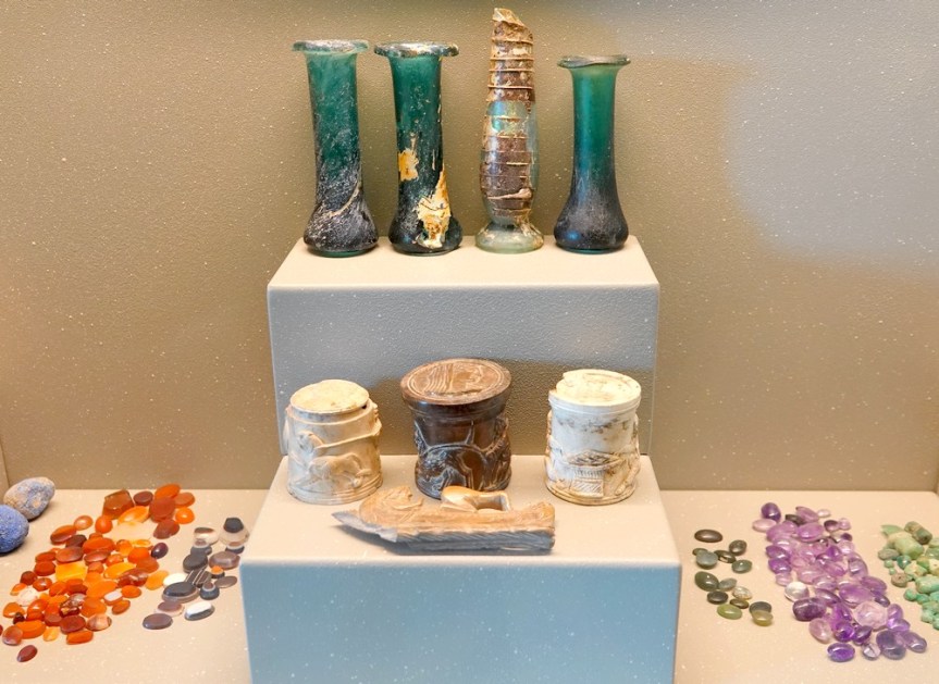 Installé depuis 1882 à quelques pas de la basilique, le musée archéologique illustre sept siècles d’histoire de l’Aquilée romaine du IIe siècle av. JC au Ve siècle de notre ère ; c’est même l’un des plus grands musées du monde sur la civilisation romaine. Au fil des douze salles, nous découvrons une collection exceptionnelle de statues, monuments funéraires, pierres précieuses, ambres et pièces de monnaie d’Aquilée. Là encore, nous sommes impressionnés par l’état de conservation des objets, leur nombre et leur variété, notamment en ce qui concerne les fioles en verre, les outils liés à la cosmétique et la médecine ou encore les minuscules pierres précieuses gravées – si petites qu’une loupe est nécessaire pour voir le dessin !